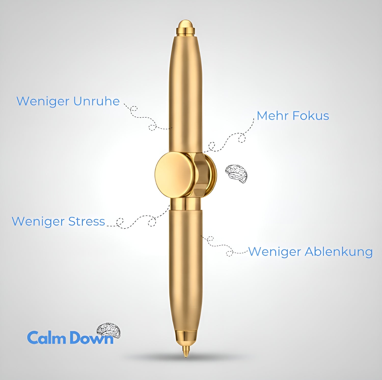Der CalmDown Stift ist gezielt für Stressabbau & Fokus entwickelt – durch haptische Elemente, Widerstand und leise Bewegung.