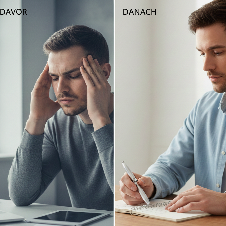 Hände ruhiger, Gedanken klarer, weniger innerer Druck.