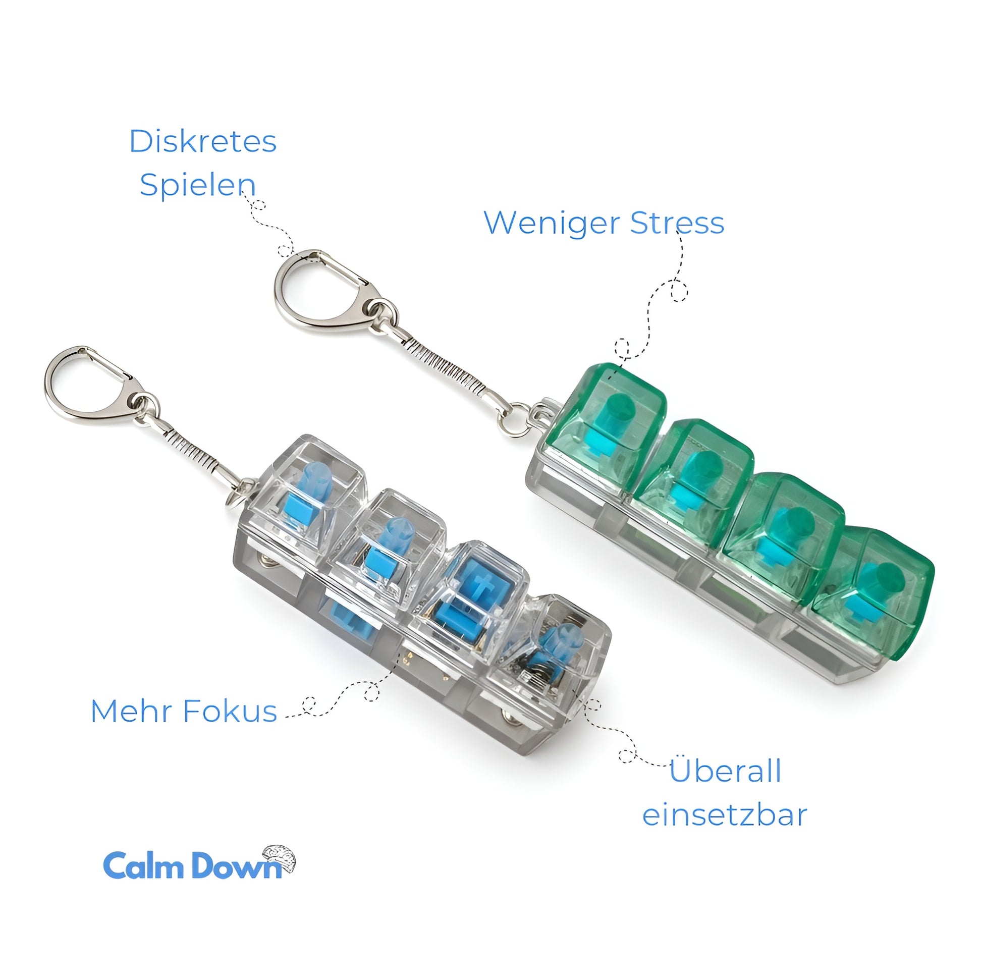 Der CalmDown Klicker ist gezielt für Stressabbau & Fokus entwickelt – durch haptische Elemente, Widerstand und leise Bewegung.